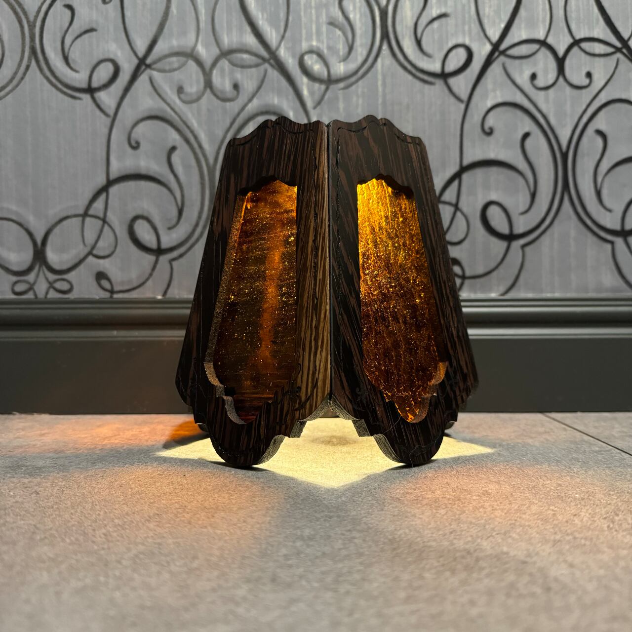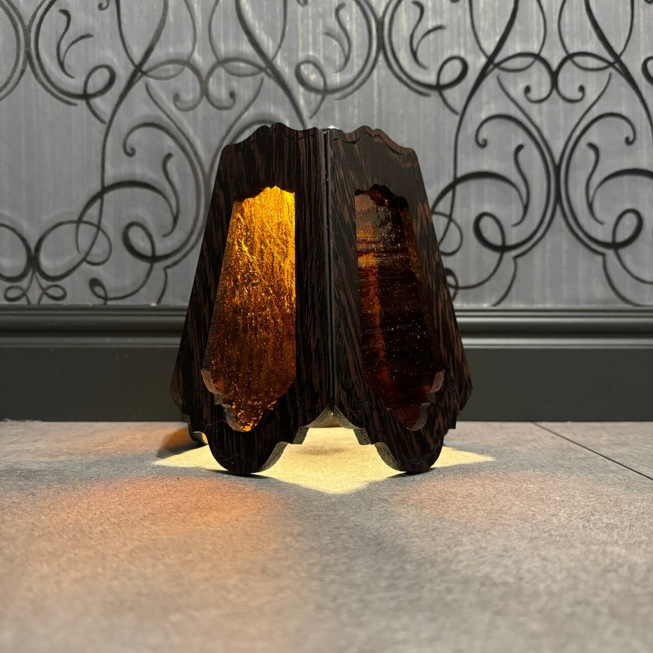 無垢材ウェンジとステンドグラスを融合させ両方の美しさを最大限に活かした高級感漂う Bornオリジナルゴールゼロ用ランプシェード(2WAY:吊る・置き型)