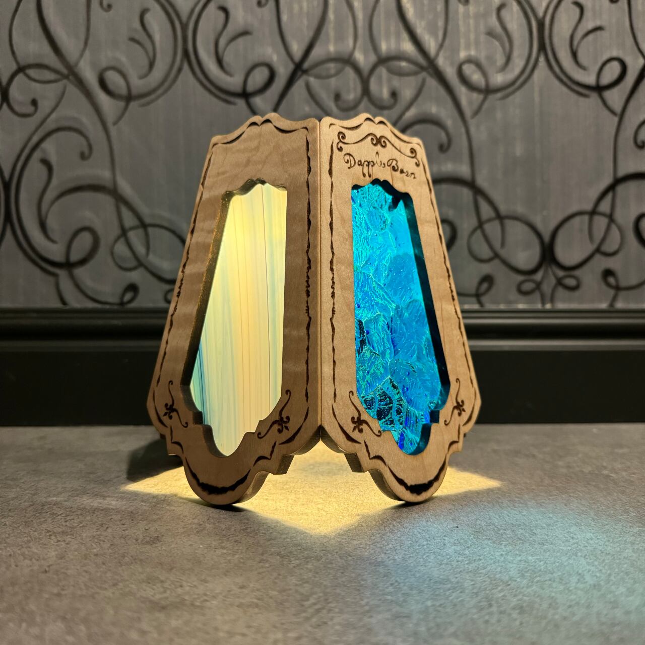 無垢材カーリーメイプルとステンドグラスを融合させ両方の美しさを最大限に活かした高級感漂う Bornオリジナルゴールゼロ用ランプシェード(2WAY:吊る・置き型)