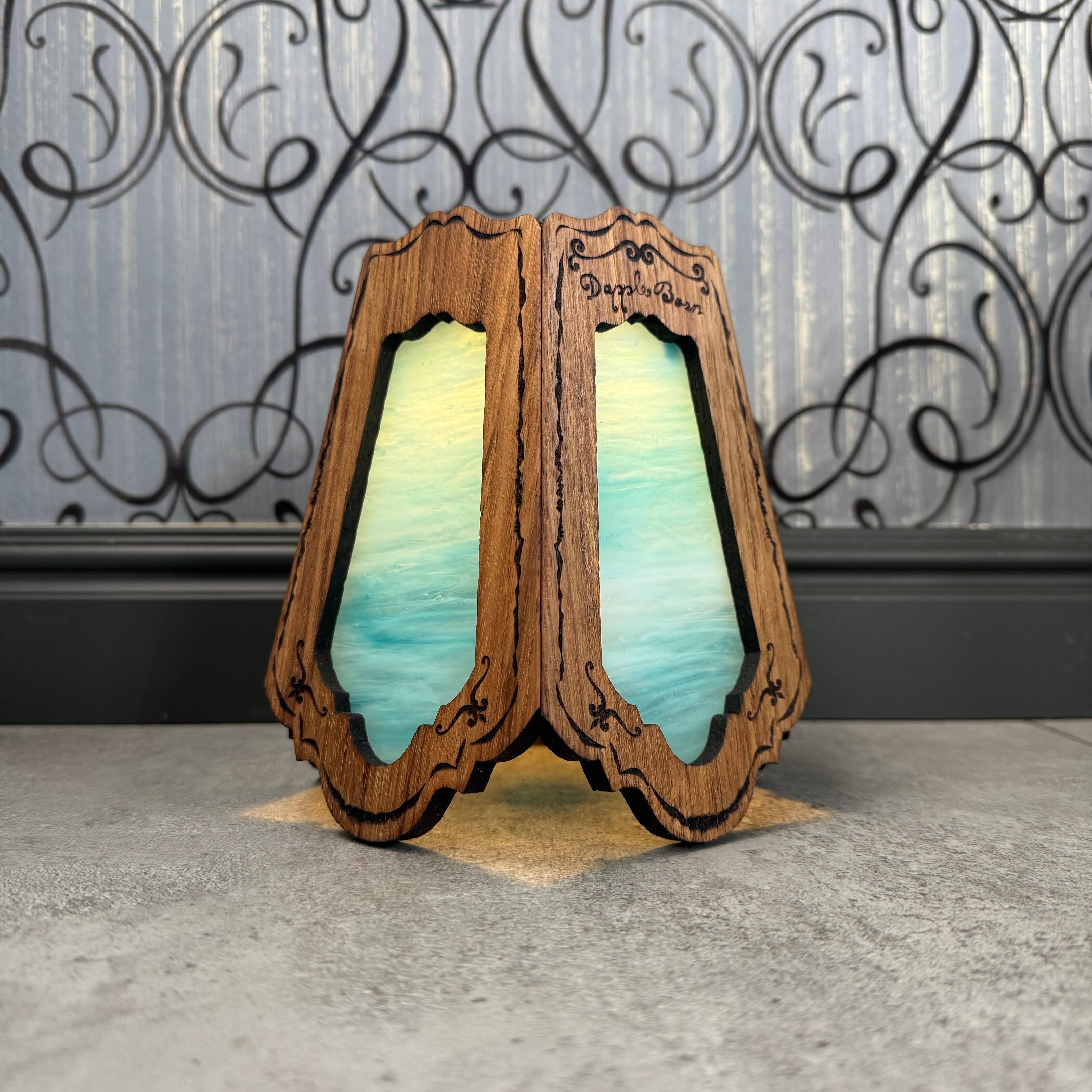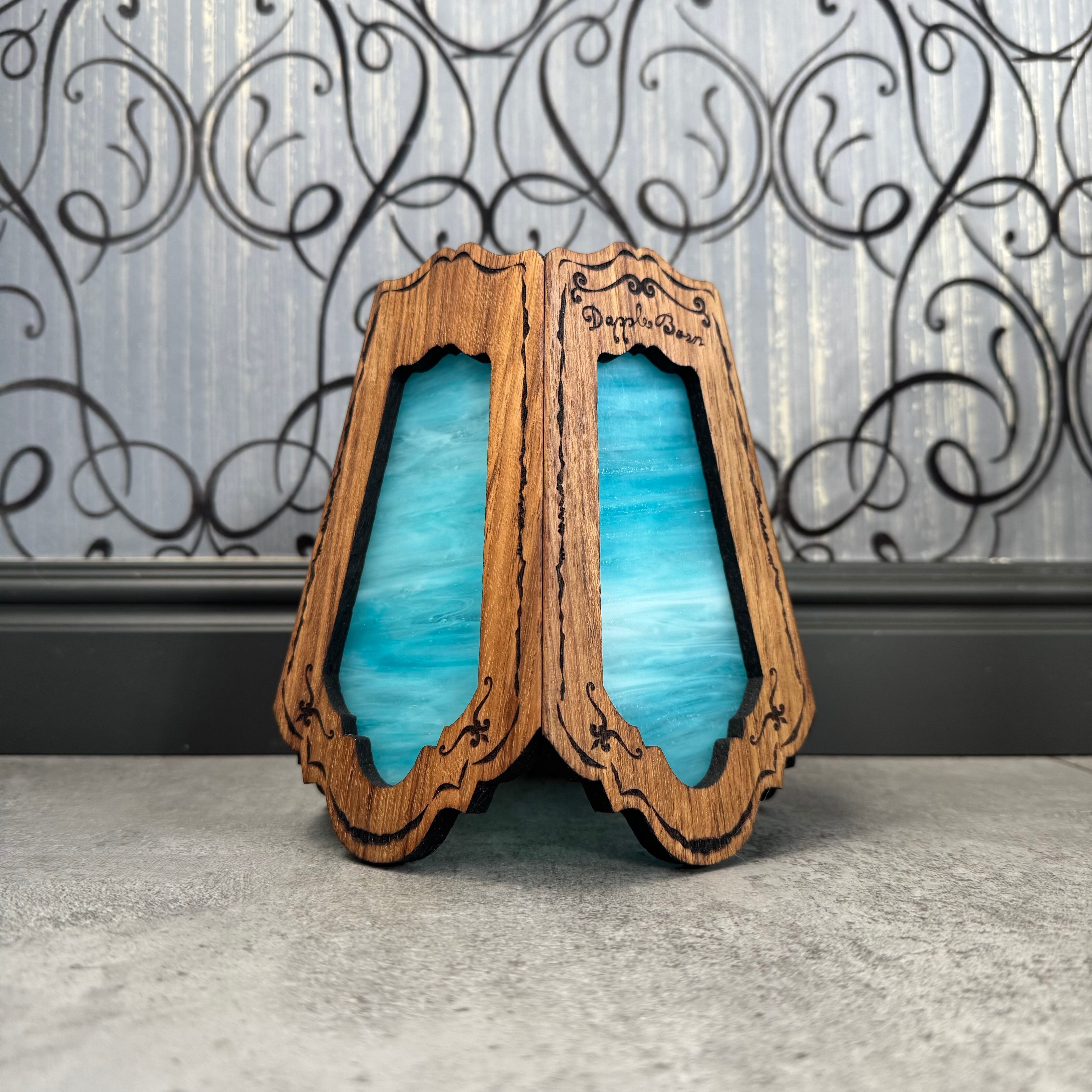 無垢材チークとステンドグラスを融合させ両方の美しさを最大限に活かした高級感漂う Bornオリジナルゴールゼロ用ランプシェード(2WAY:吊る・置き型)