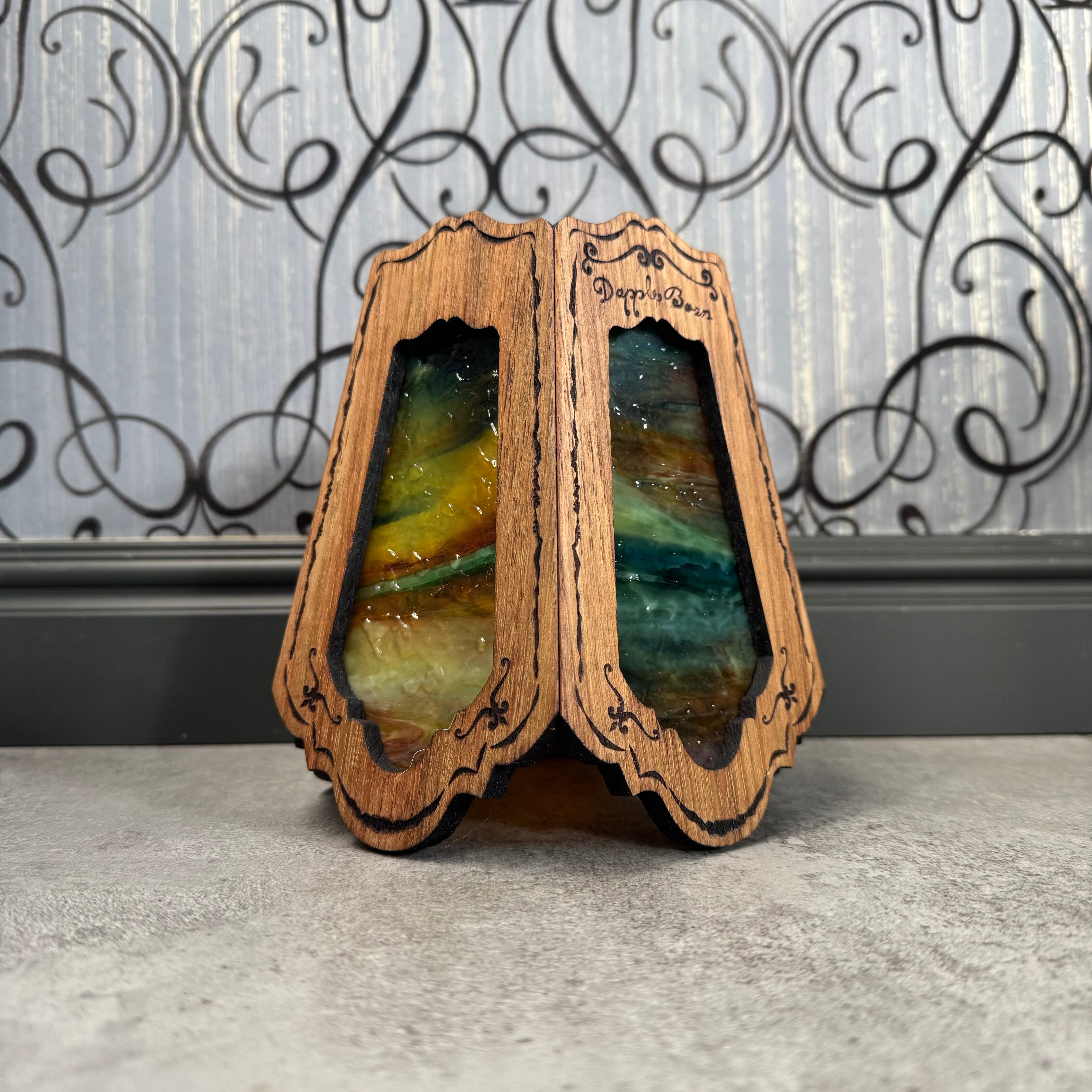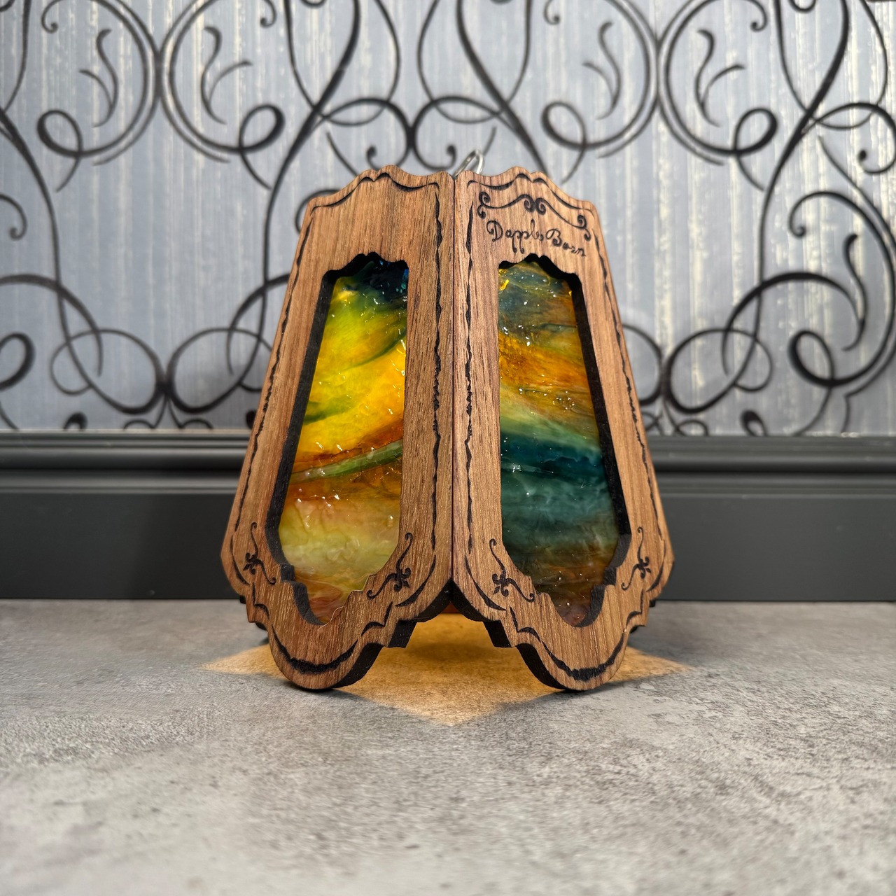 無垢材チークとステンドグラスを融合させ両方の美しさを最大限に活かした高級感漂う Bornオリジナルゴールゼロ用ランプシェード(2WAY:吊る・置き型)