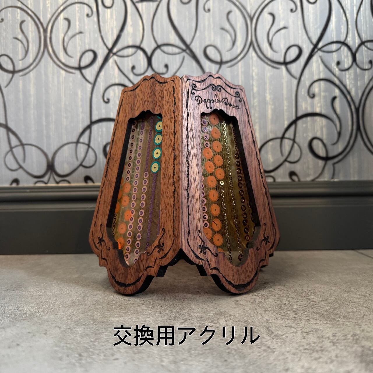 アクリルの中に生地やスパンコールを閉じ込めて、製作した伝統的なアクリルです。