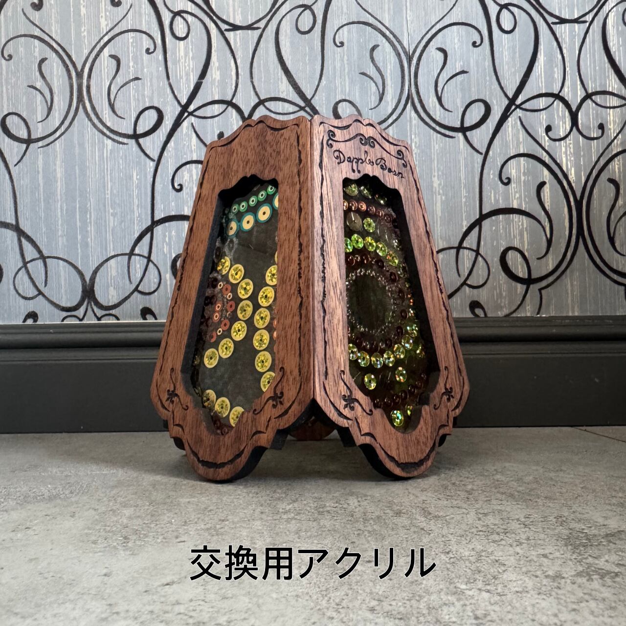 アクリルの中に生地やスパンコールを閉じ込めて、製作した伝統的なアクリルです。