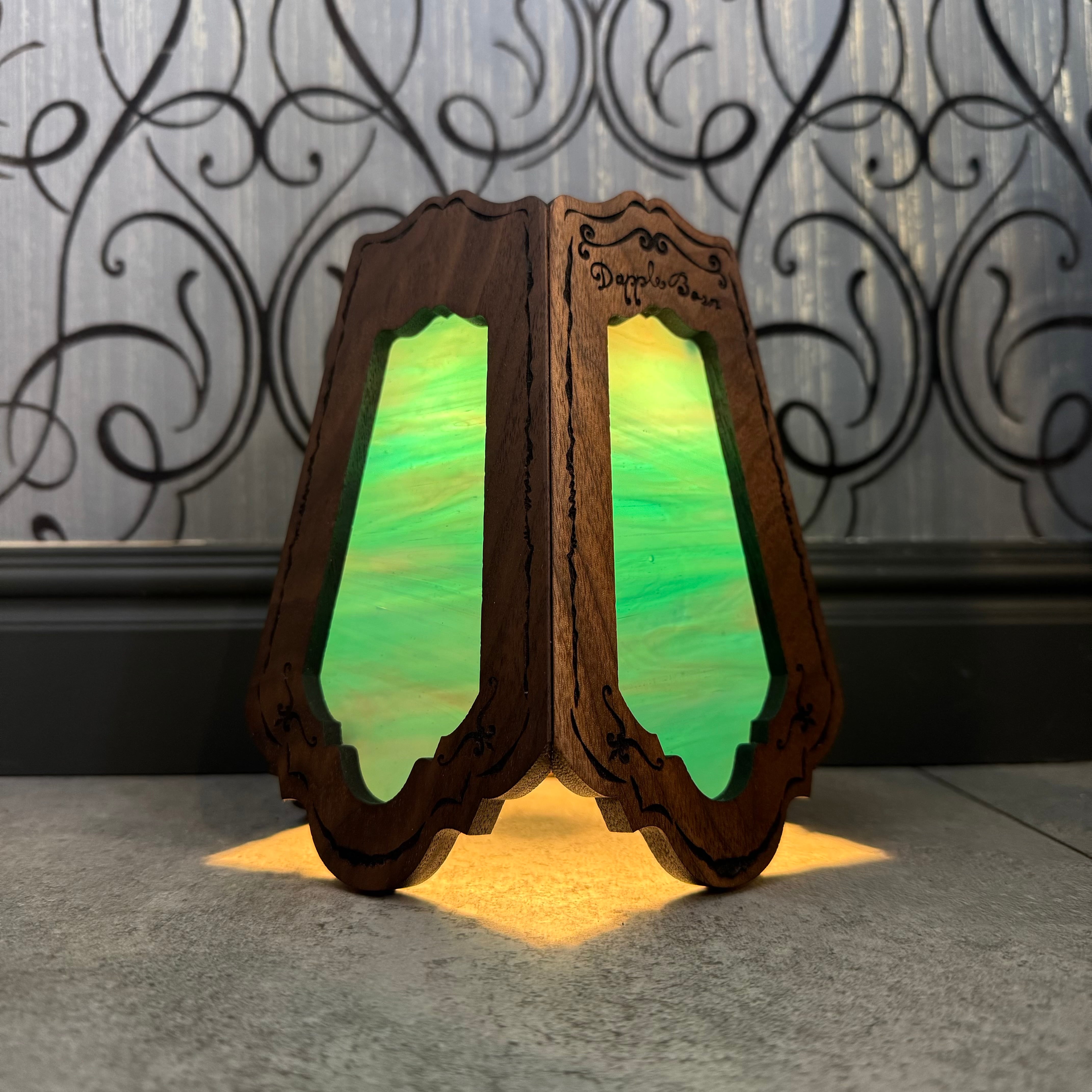 ダップルグラスシェード【ウォールナット】ディープグリーンブルー