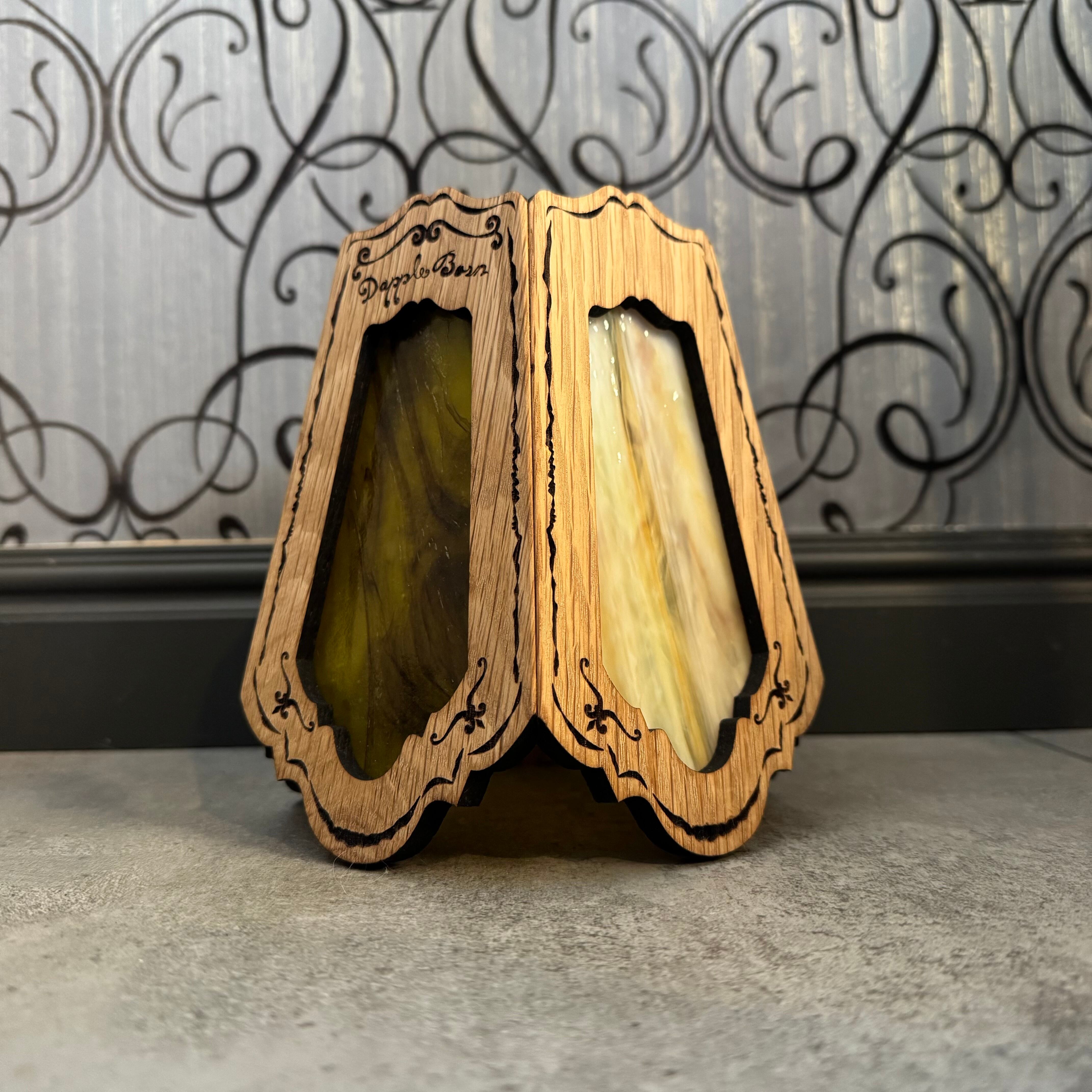 無垢材ホワイトオークとステンドグラスを融合させ両方の美しさを最大限に活かした高級感漂う Bornオリジナルゴールゼロ用ランプシェード(2WAY:吊る・置き型)