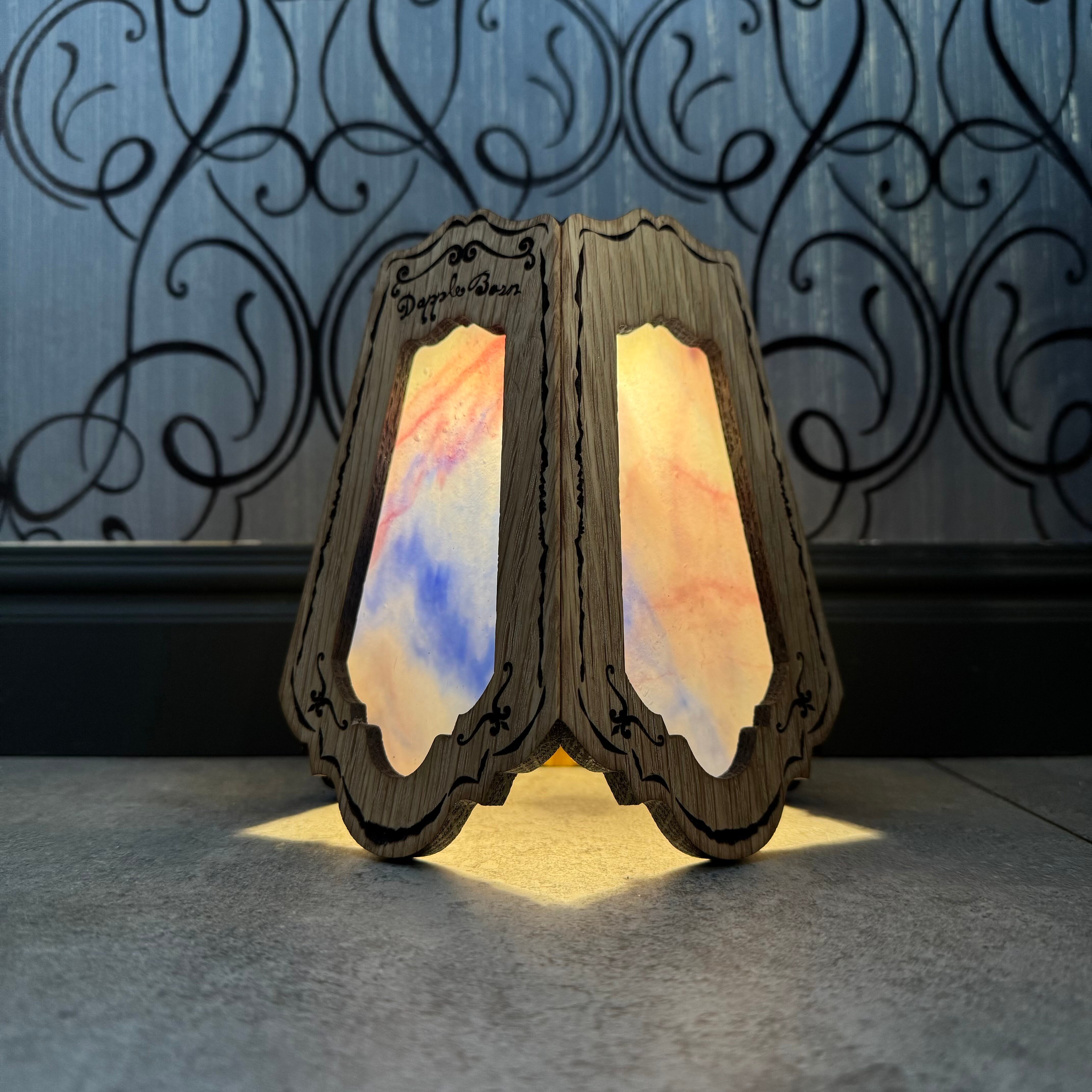 無垢材ホワイトオークとステンドグラスを融合させ両方の美しさを最大限に活かした高級感漂う Bornオリジナルゴールゼロ用ランプシェード(2WAY:吊る・置き型)