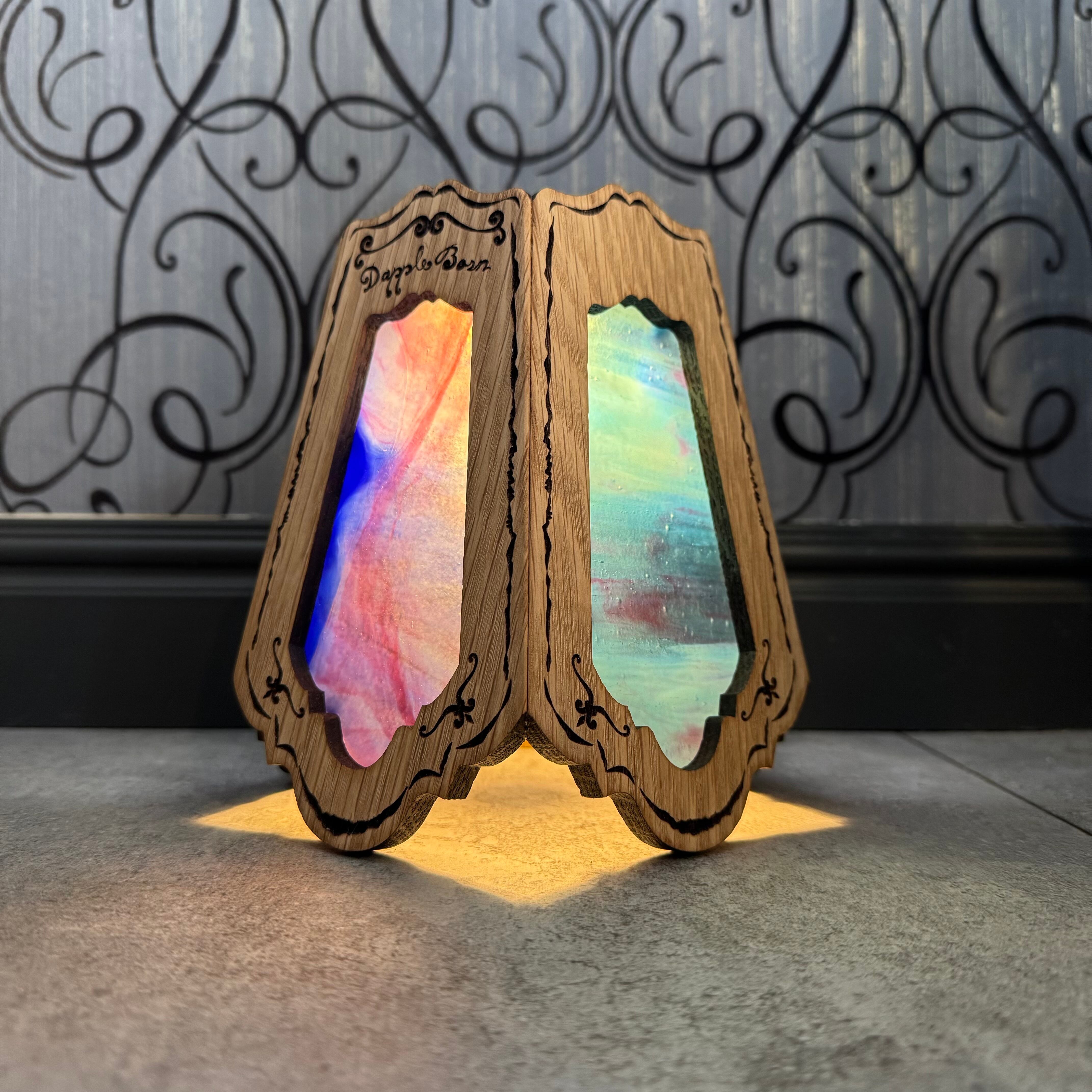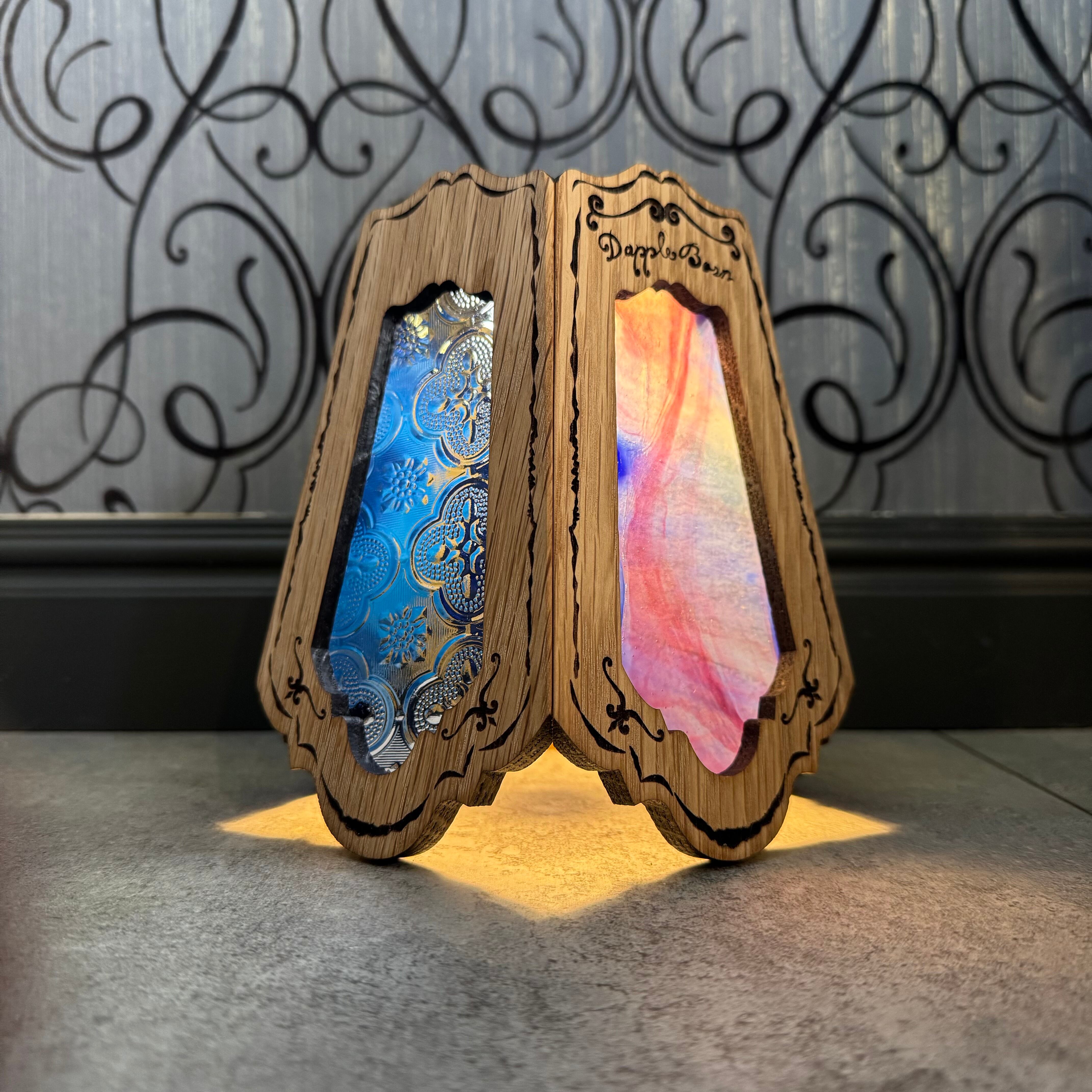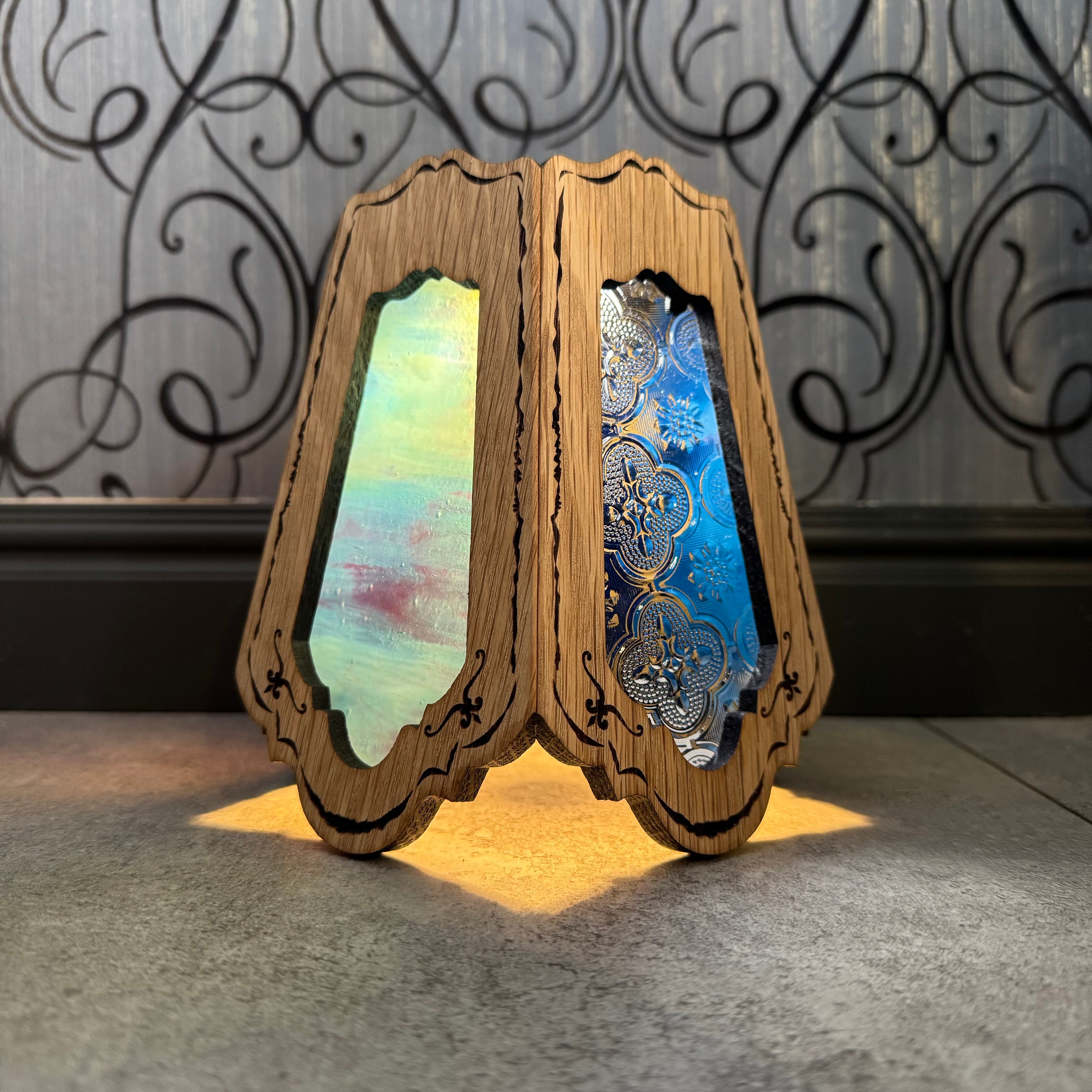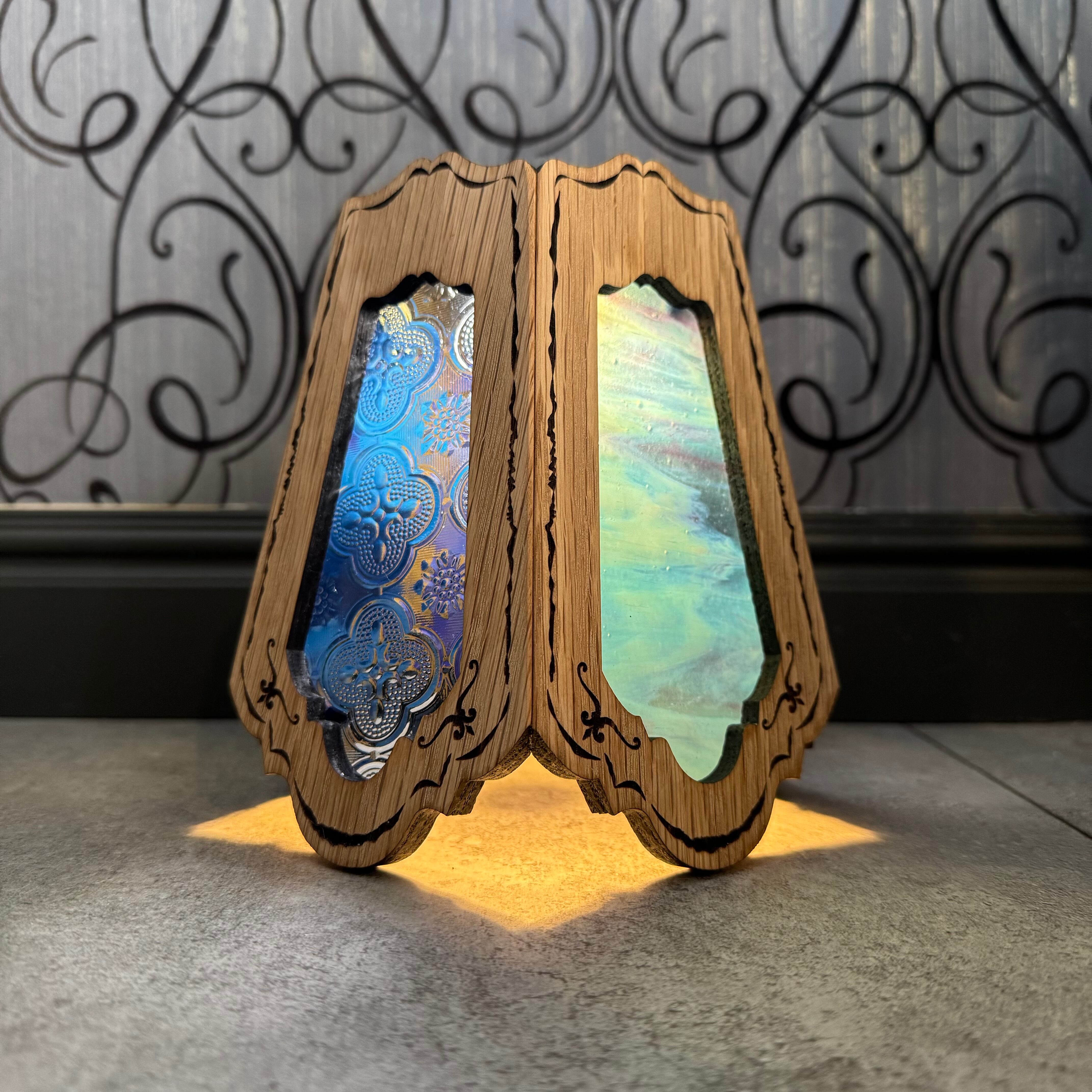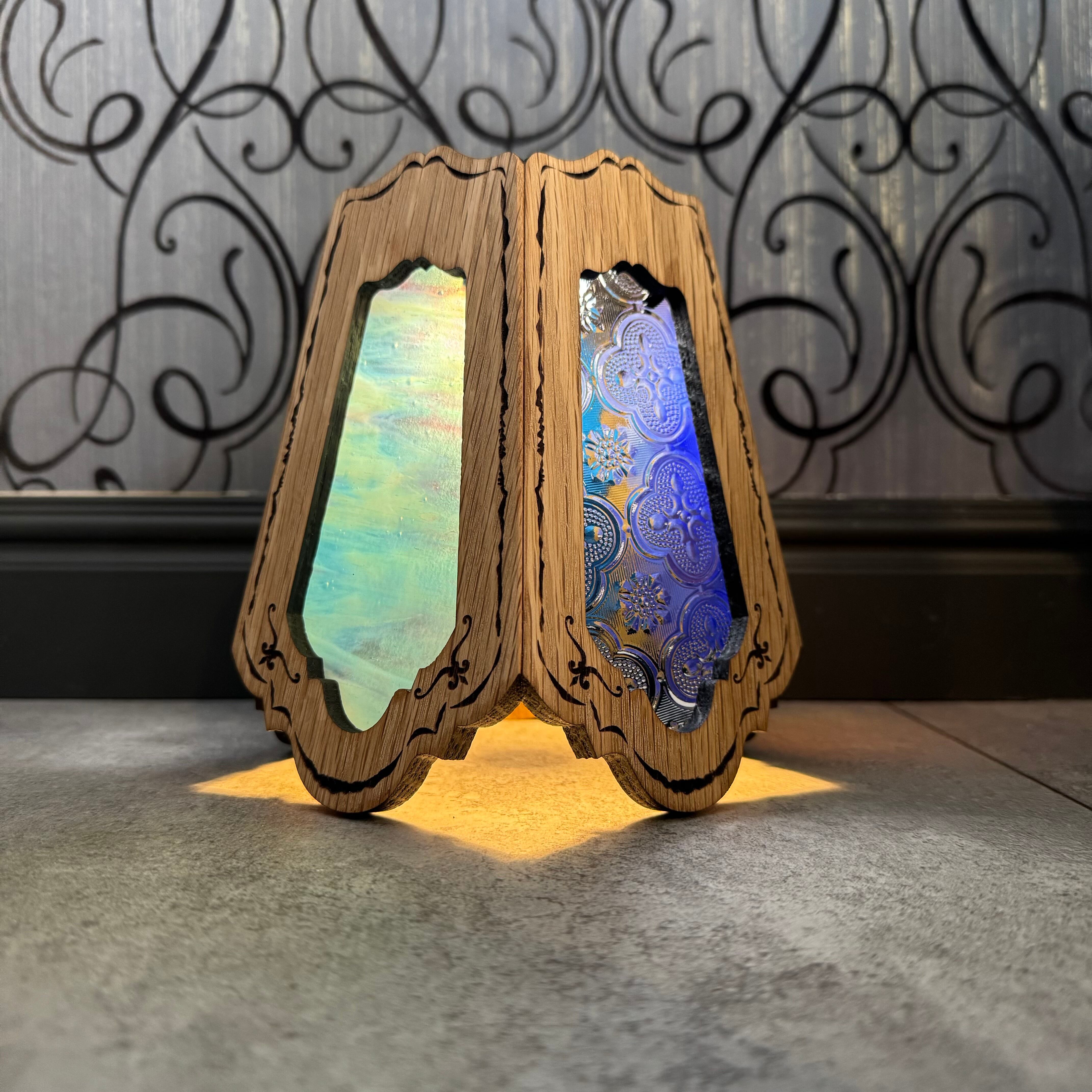 無垢材ホワイトオークとステンドグラスを融合させ両方の美しさを最大限に活かした高級感漂う Bornオリジナルゴールゼロ用ランプシェード(2WAY:吊る・置き型)