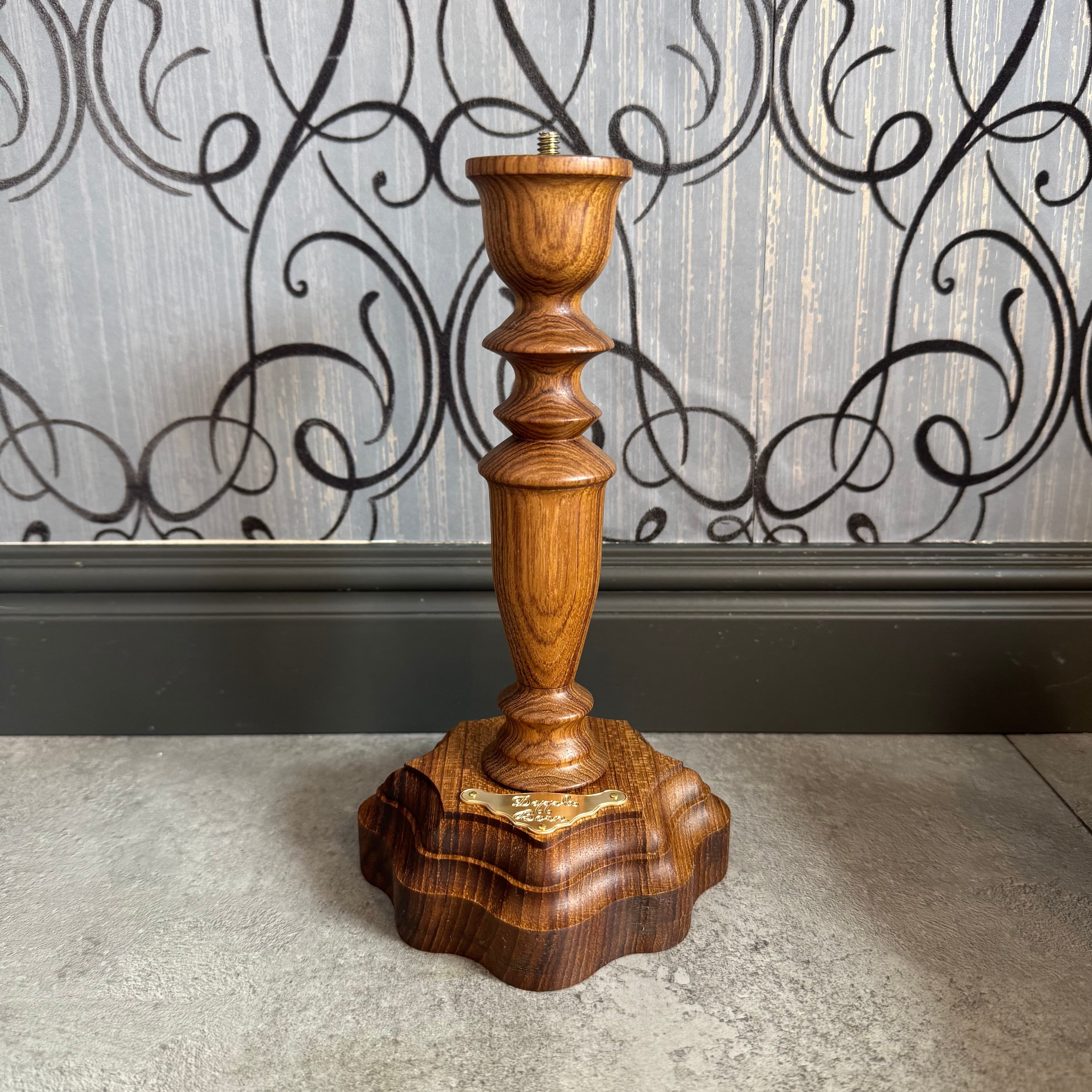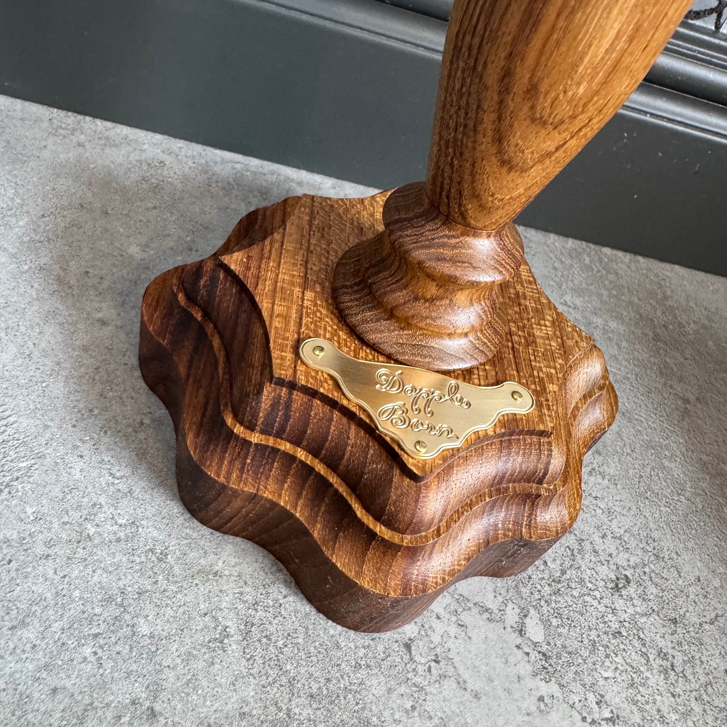 チーク無垢材を贅沢に削り出した、マルチに使用できるスタンド。1/4インチネジのお好きなギアを取り付ける事ができます。