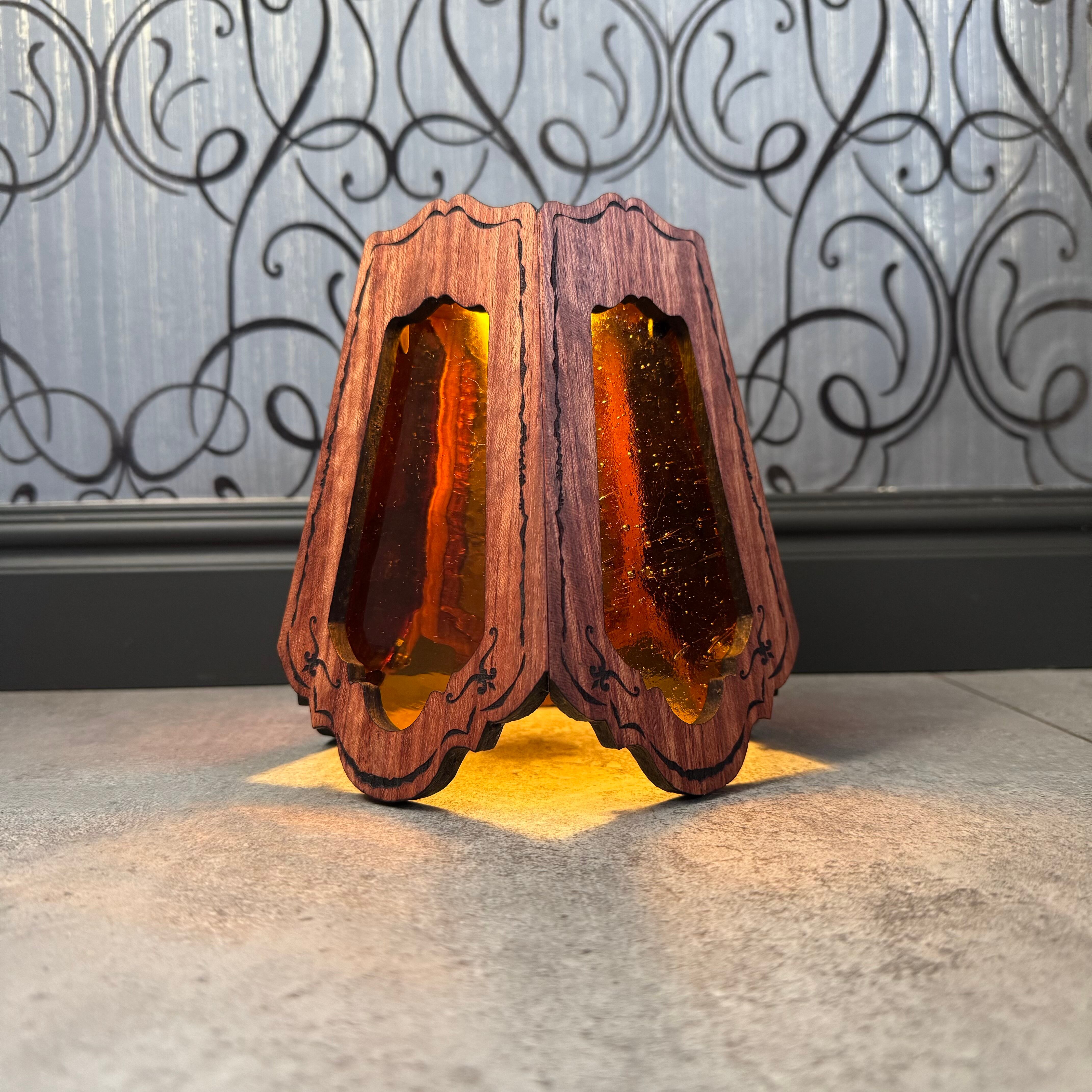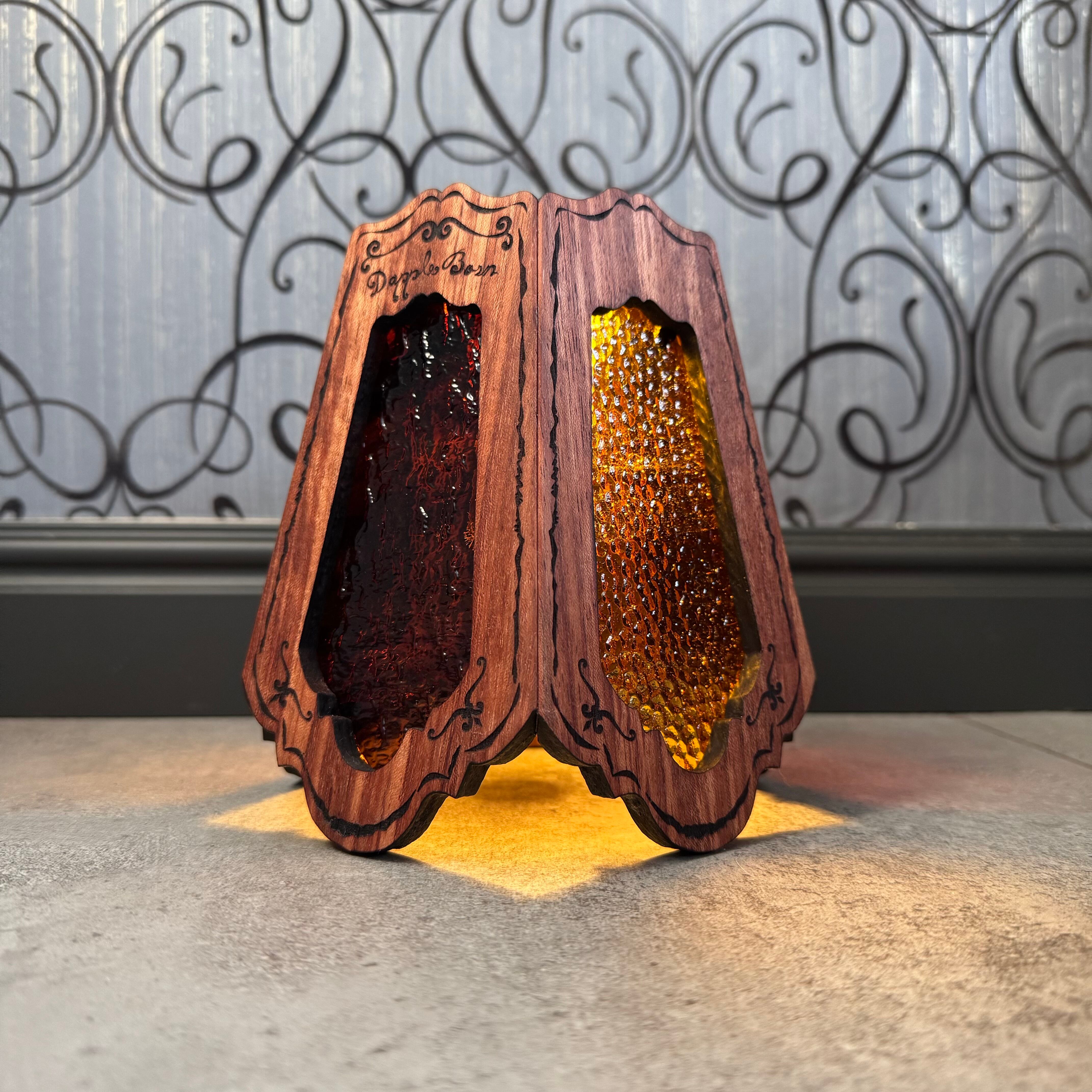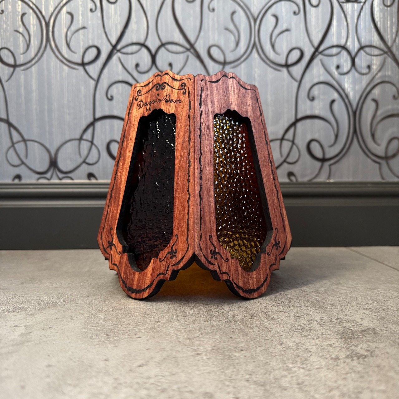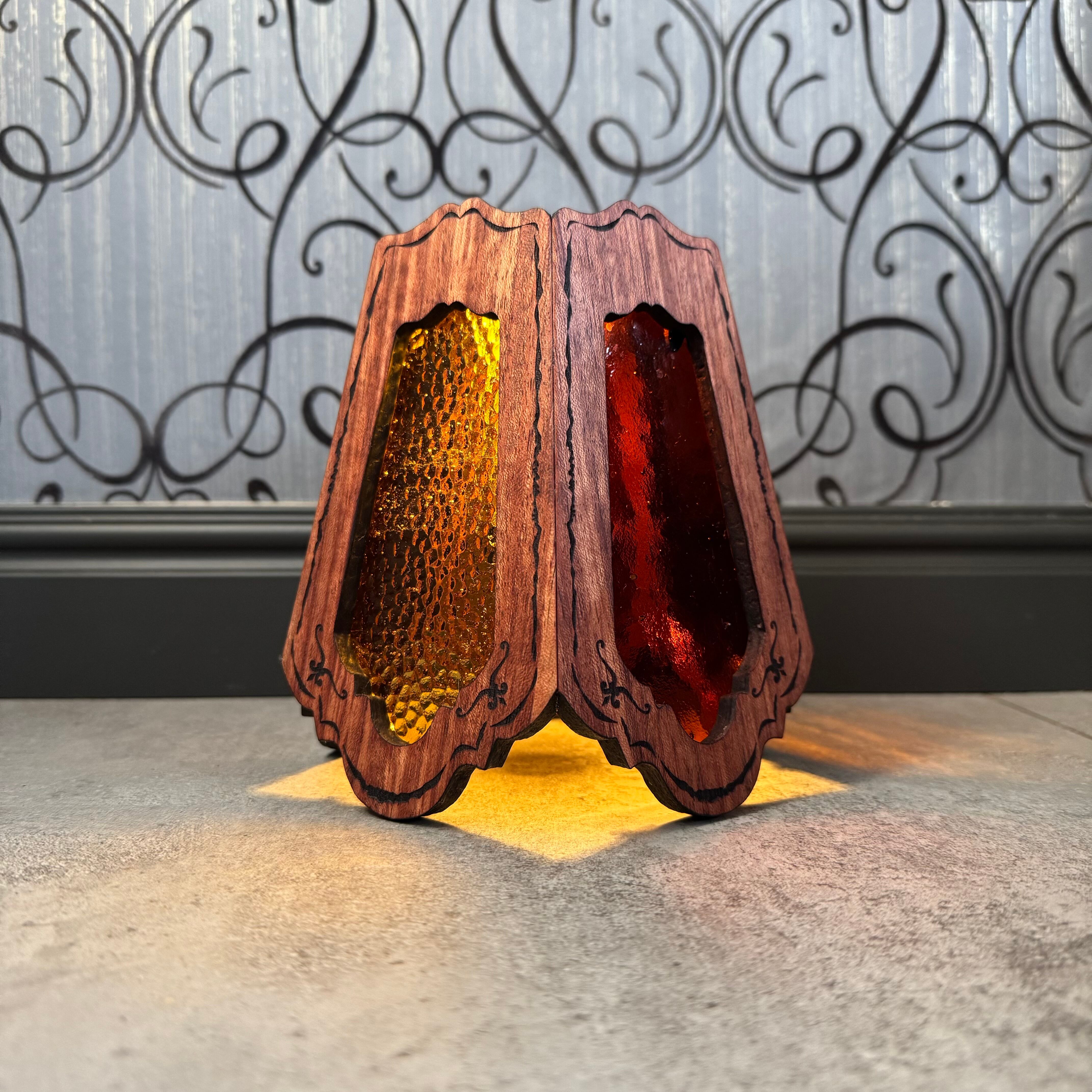 無垢材ブビンガとステンドグラスを融合させ両方の美しさを最大限に活かした高級感漂う Bornオリジナルゴールゼロ用ランプシェード(2WAY:吊る・置き型)